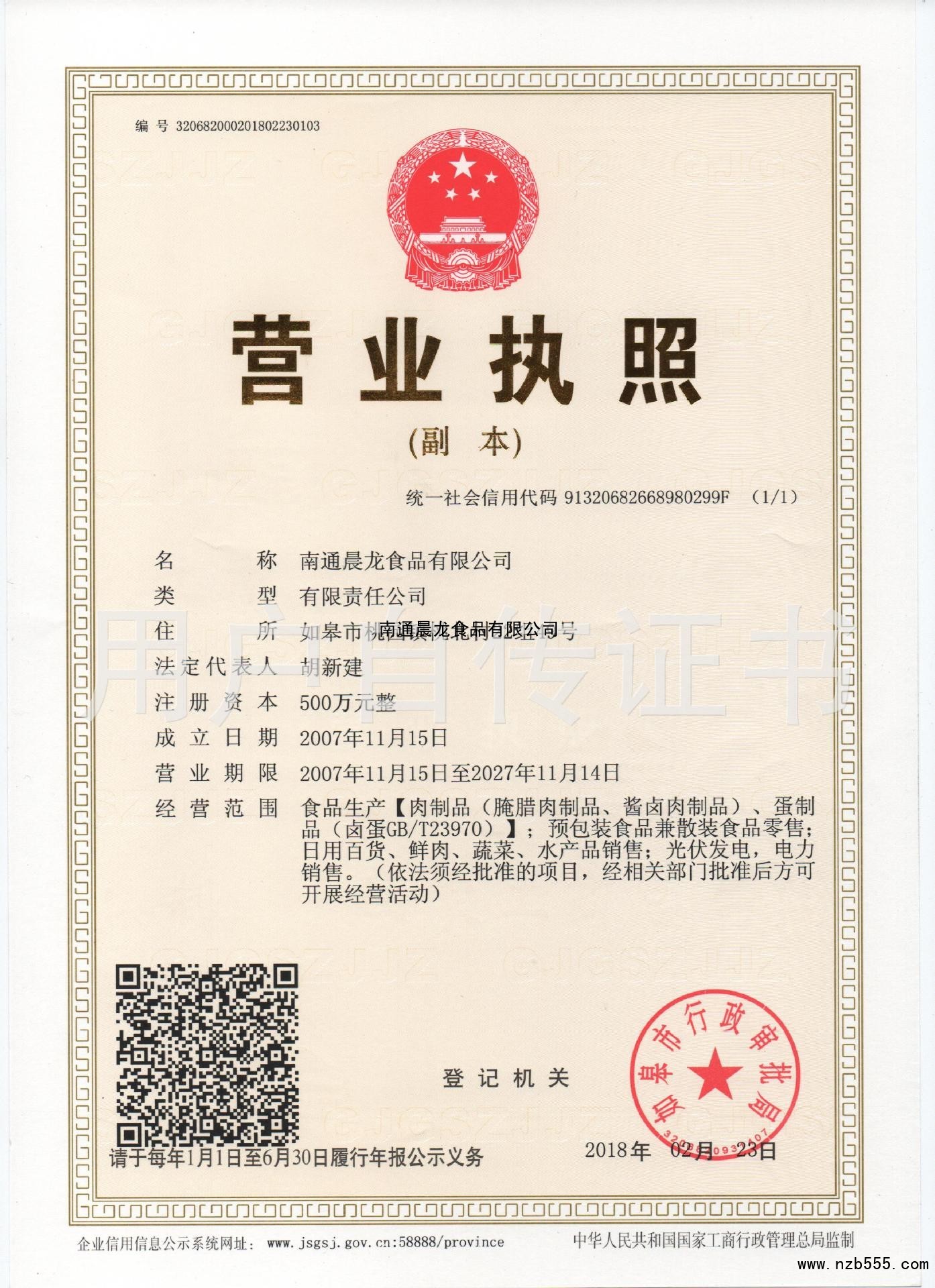| 發(fā)證機(jī)構(gòu): | 如皋市行政審批局 | 發(fā)證時(shí)間 : | 2018-02-23 |