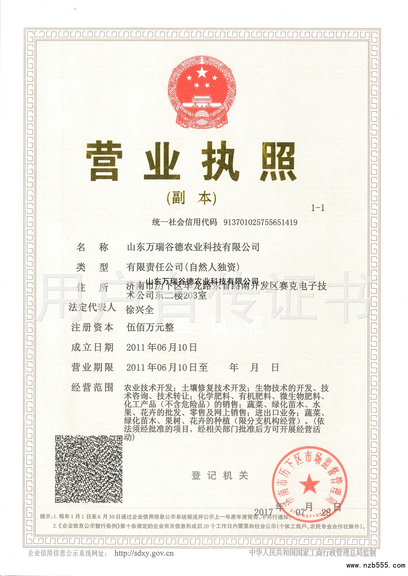 山東萬瑞谷德農業科技有限公司