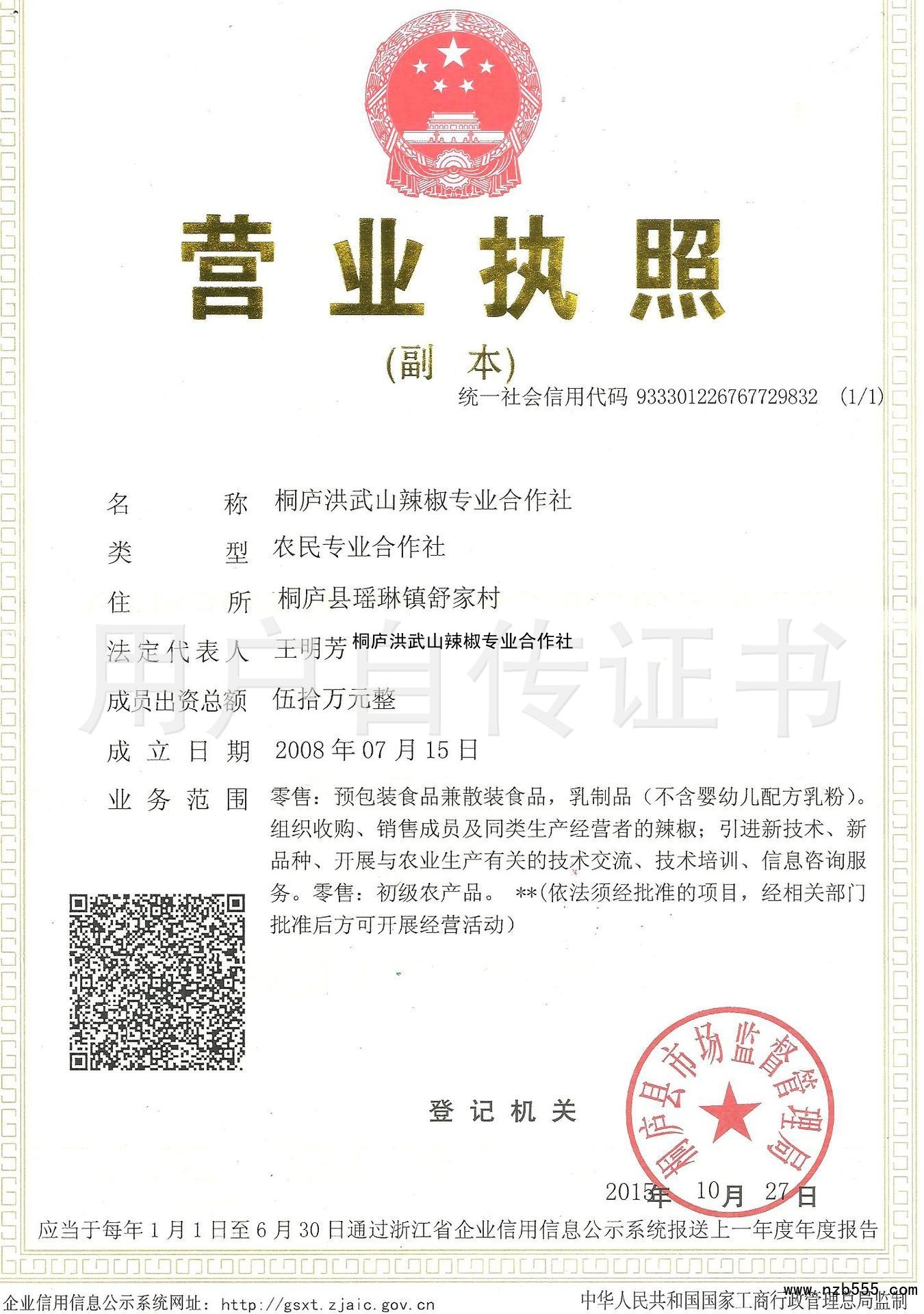 | 發(fā)證機(jī)構(gòu): | 桐廬縣市場監(jiān)督管理局 | 發(fā)證時(shí)間 : | 2015-10-27 |