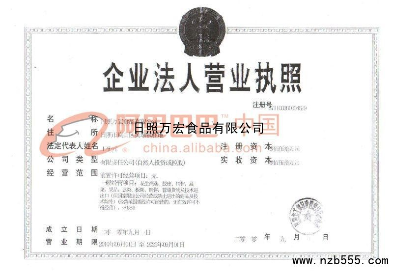 首頁 > 榮譽(yù)資質(zhì) > 日照萬宏食品有限公司