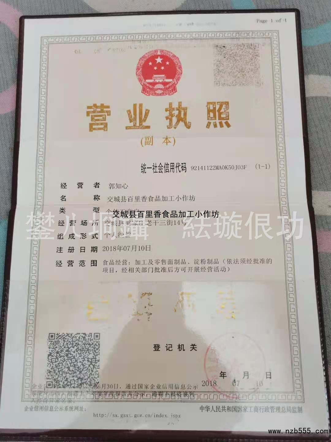 | 發(fā)證機(jī)構(gòu): | 交城縣工商行政管理局 | 發(fā)證時(shí)間 : | 2018-07-10 |