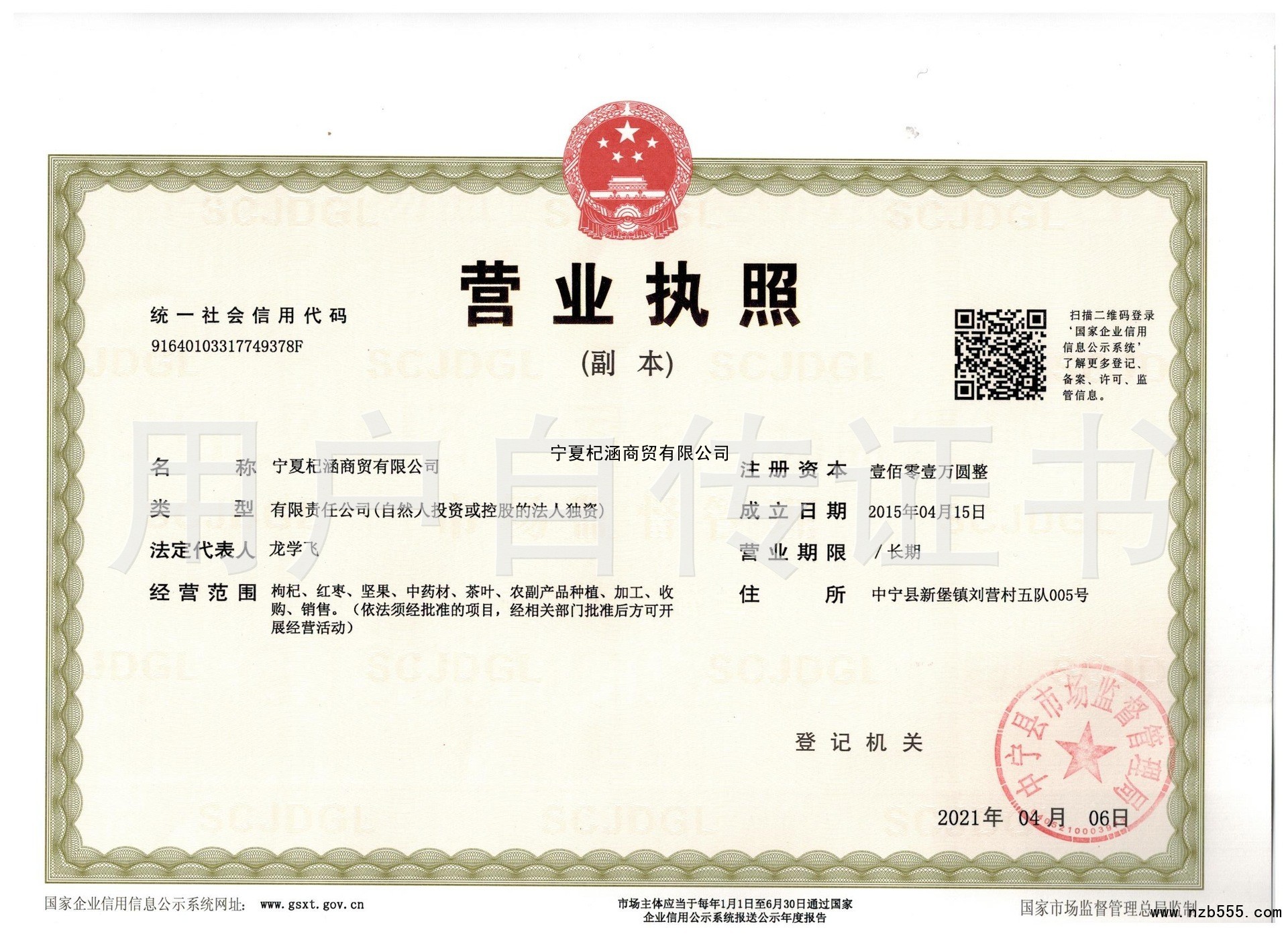 枸杞、紅棗、堅果、中藥材、茶葉、農副產品種植、加工、收購、銷售。(依法須經批...