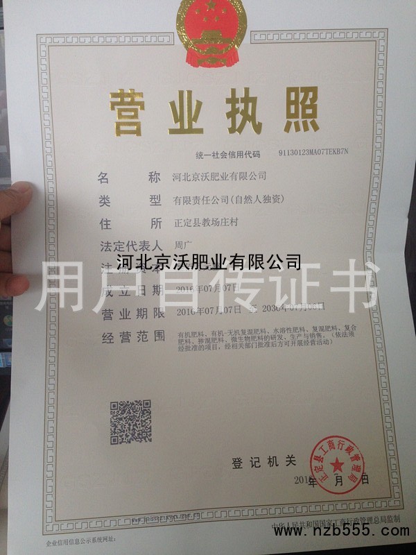 首頁 > 榮譽(yù)資質(zhì) > 河北京沃肥業(yè)有限公司