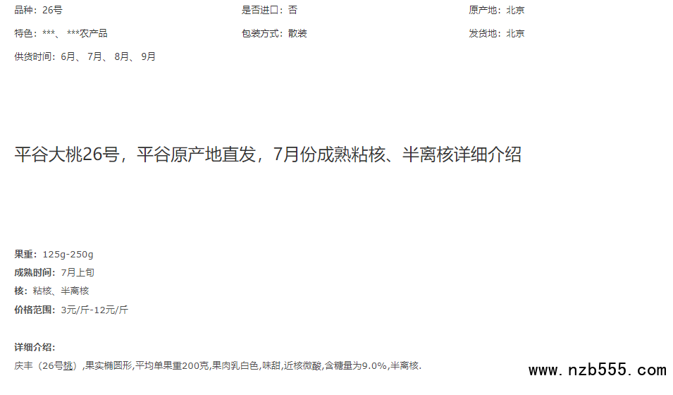 平谷大桃26號,平谷原產地直發,7月份成熟粘核、半離核