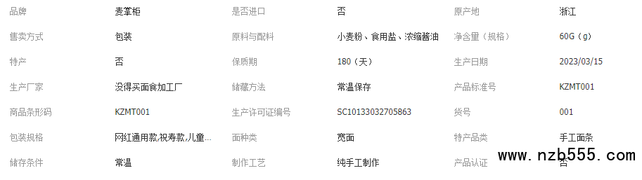 主營: 待煮面條