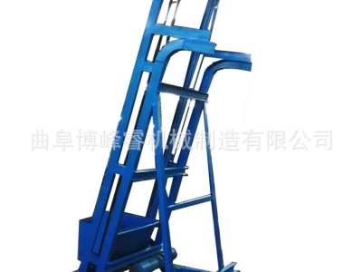 該機(jī)由帶走輪的料車、傳動(dòng)裝置、導(dǎo)軌及滑輪等組成,當(dāng)料車在底部原始位置時(shí),由工人或其他方式給料車加滿物料,料車充滿后,按動(dòng)啟動(dòng)按鈕,傳動(dòng)裝置的鏈條牽引料車緩緩上升,料車沿著導(dǎo)軌上升到運(yùn)料層后,料車斗體清翻而卸出物料
