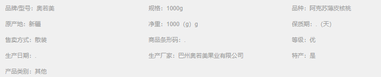 奧若美干果 阿克蘇薄皮核桃 1000克